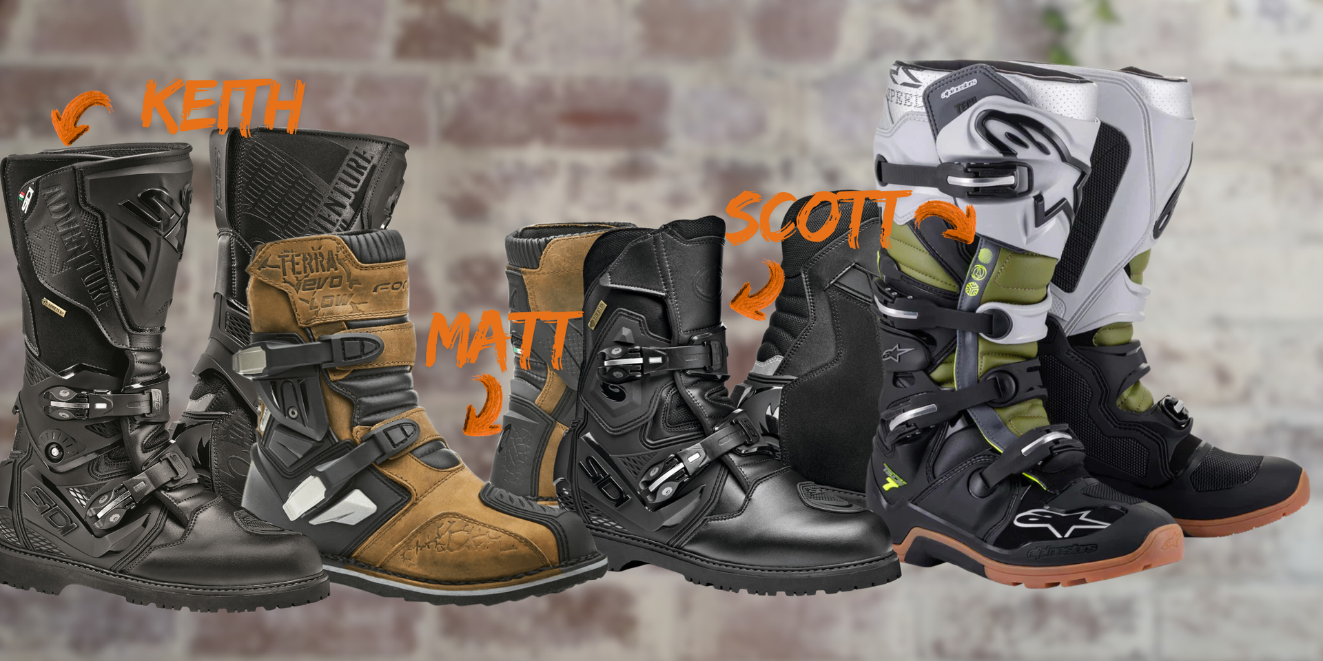 Because we are so different as riders, we look for different things in our gear. The following is our collective list of boots that have earned full-time status in our garage: